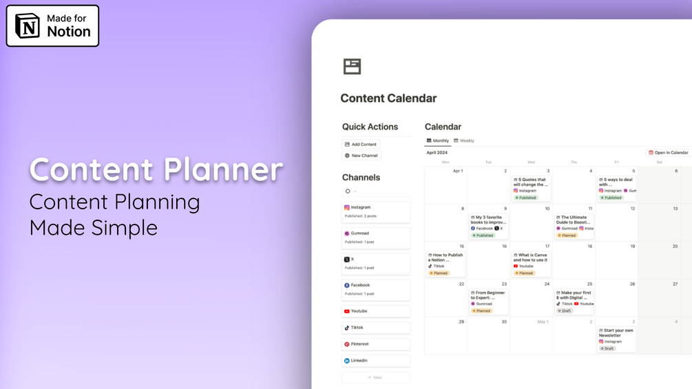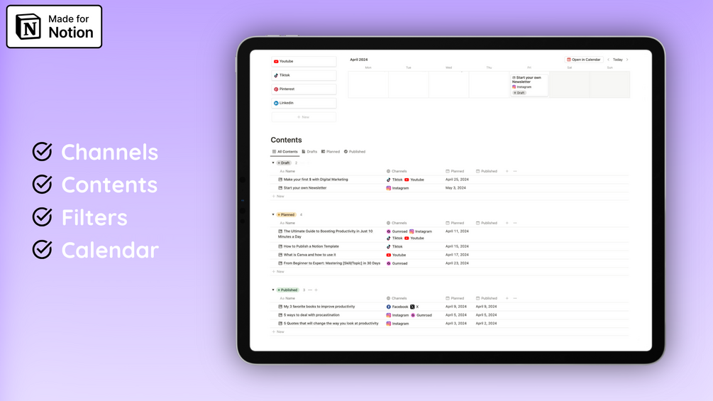 Contact MeNotion Content Calendar