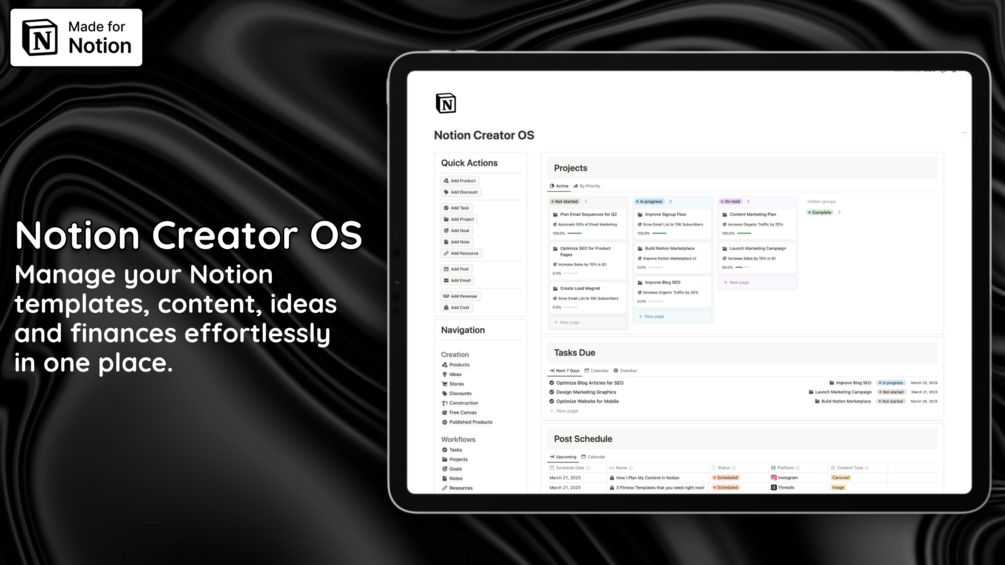 Introducing Notion Creator OS, the ultimate template for Notion creators to manage their products, content, and business operations. This all-in-one system helps you organize your ideas, track progress, and keep your creative business running smoothly.