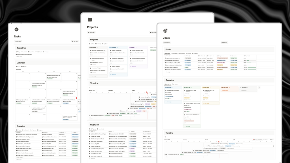 Keep track of your Notion templates, ideas, and digital products in a structured system. - Task & Project Tracking