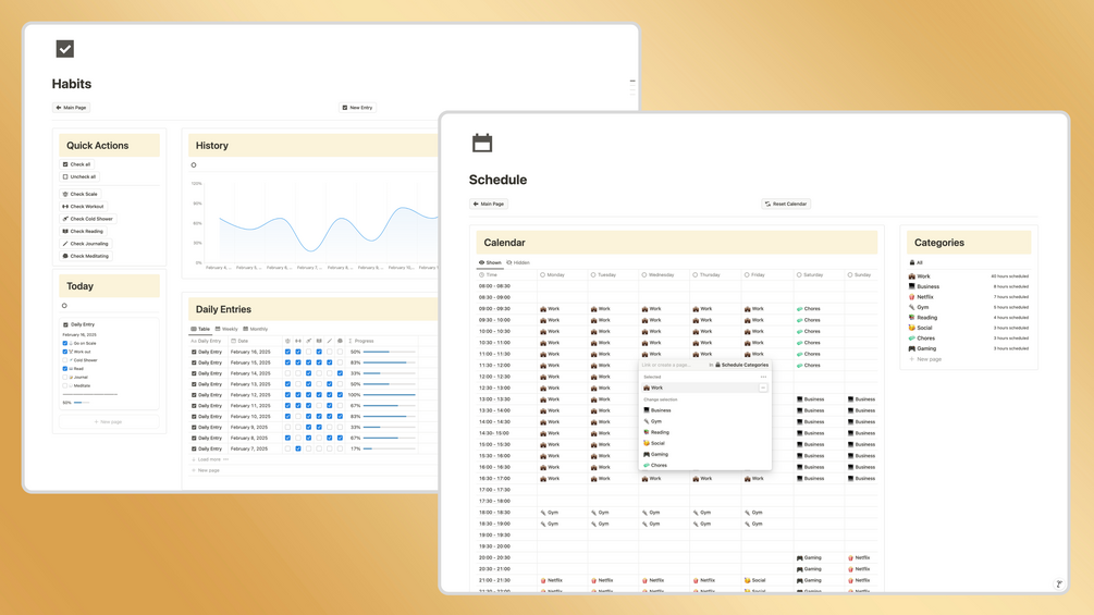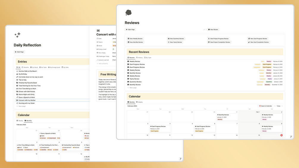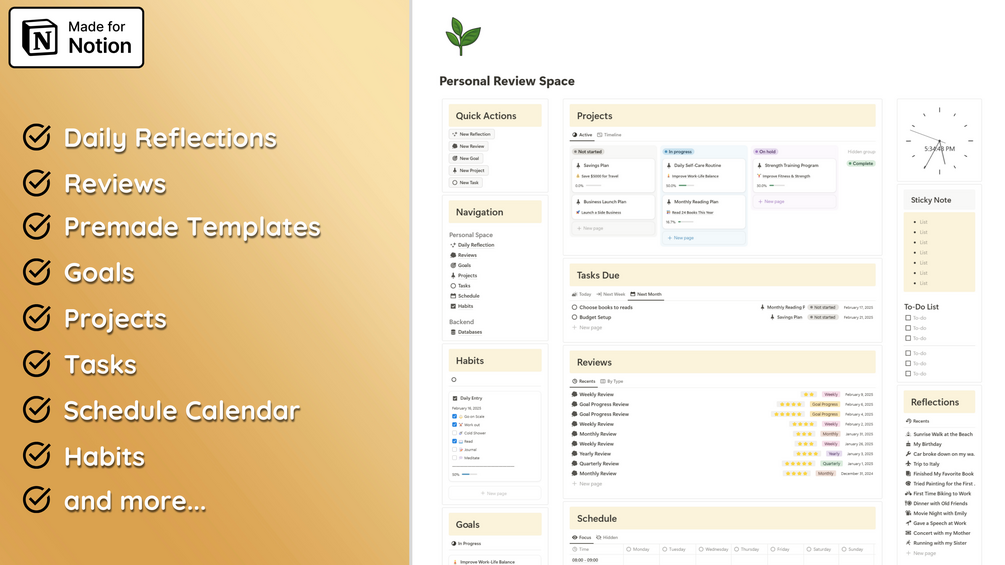 A central hub to organize your reflections, goals, projects, and habits—all in one place. -