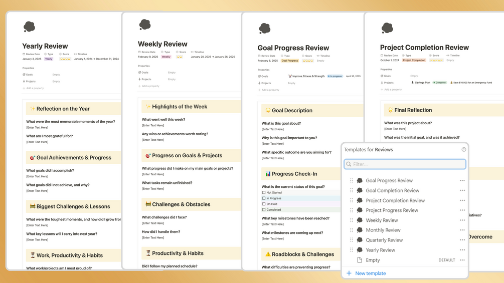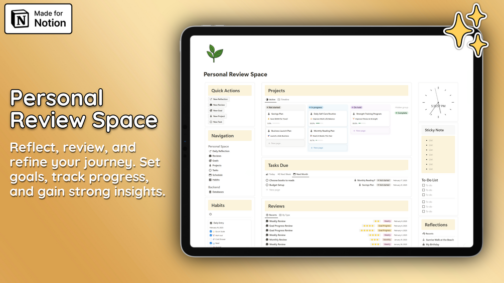 Empower your growth, reflect with purpose, and take control of your journey with the Notion Personal Review Space!