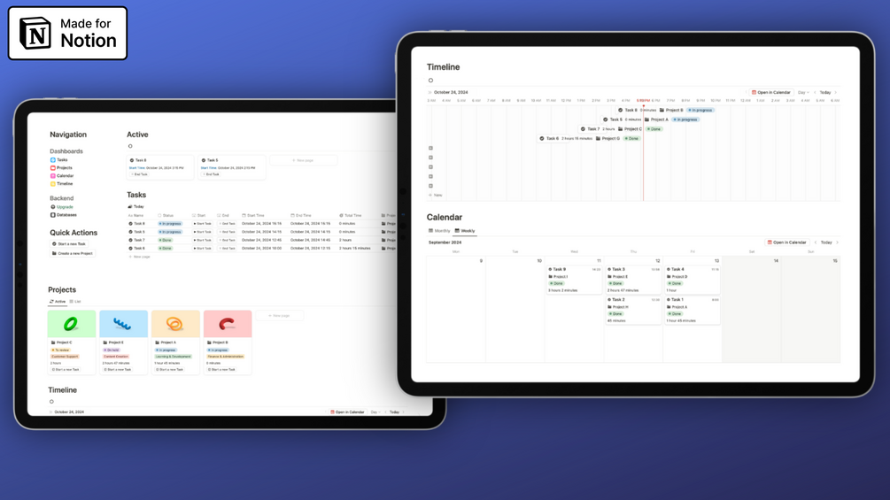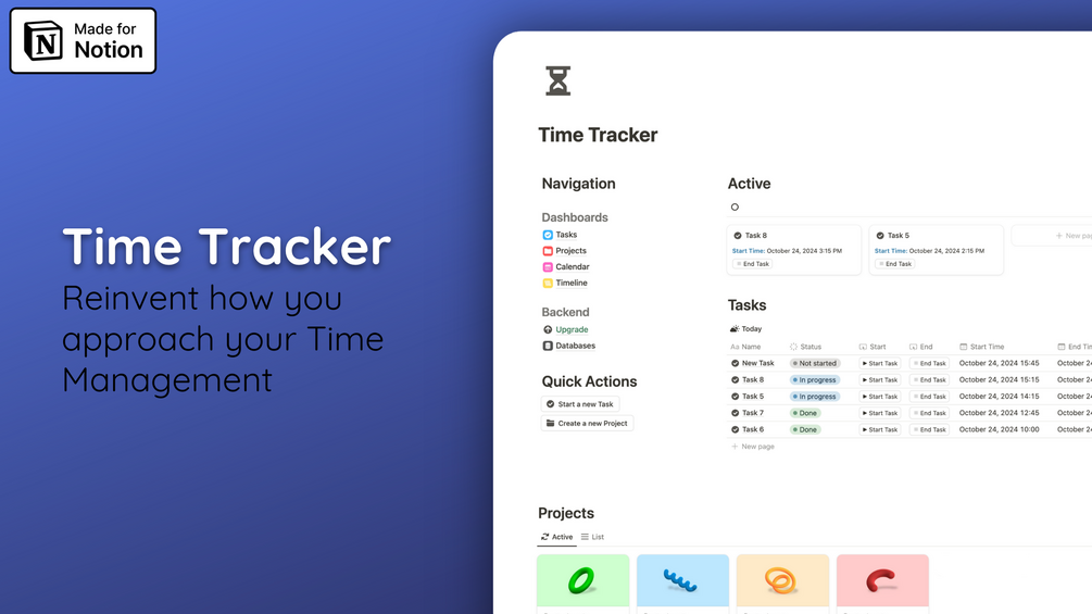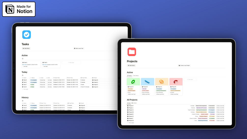 This intuitive template helps you effortlessly track and manage your time. With customizable project categories and a clean design, you can easily start and stop tasks, recording the time spent on each one. The template automatically calculates the total time for each project, keeping you organized and informed. Perfect for personal use, it's your first step toward more efficient time management.